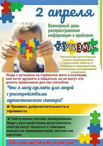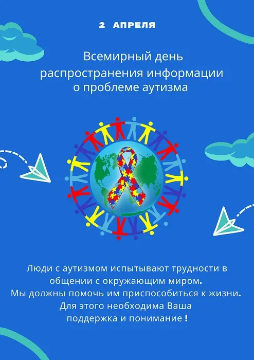 2 АПРЕЛЯ МЕЖДУНАРОДНЫЙ ДЕНЬ РАСПРОСТРАНЕНИЯ ИНФОРМАЦИИ О ПРОБЛЕМЕ АУТИЗМА